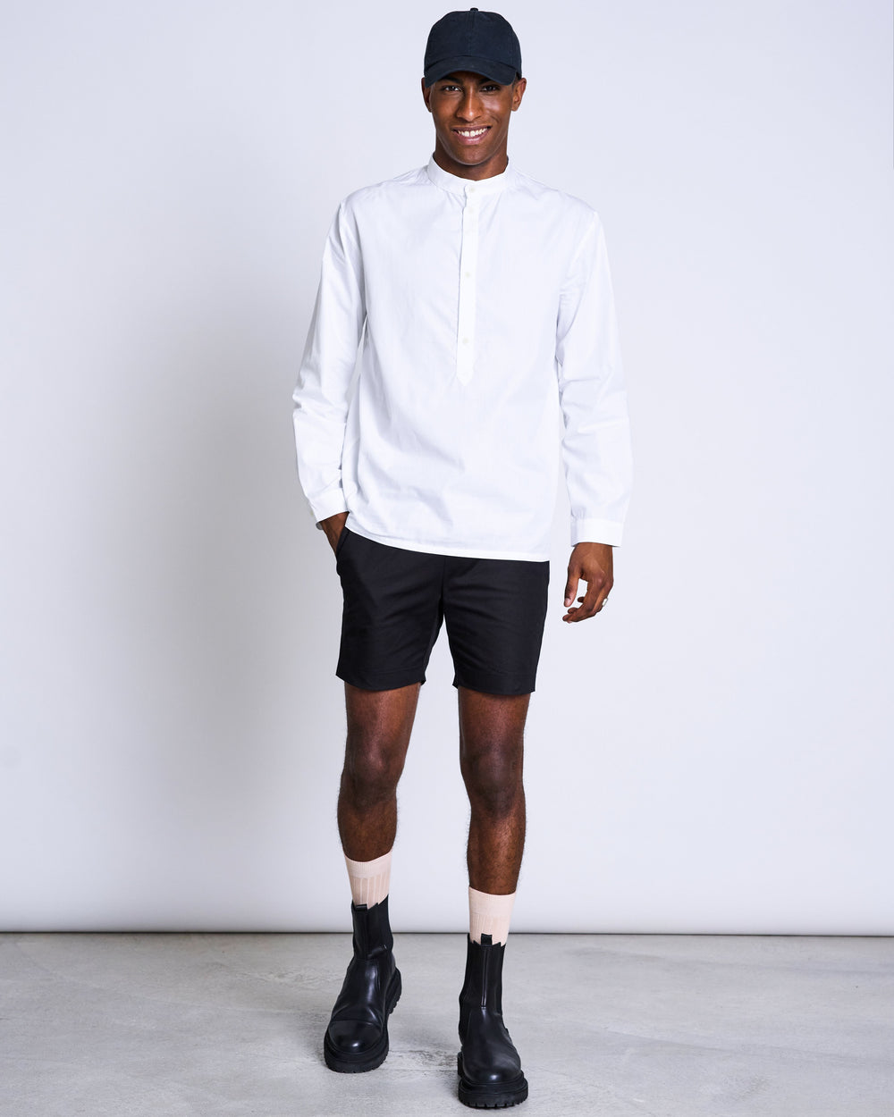 Shirt ARUM has a regular fit and is made from a soft organic cotton fabric. It has a stand-up collar and half a button line. Pretty classy and pretty simple.