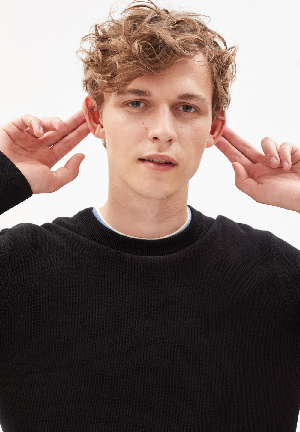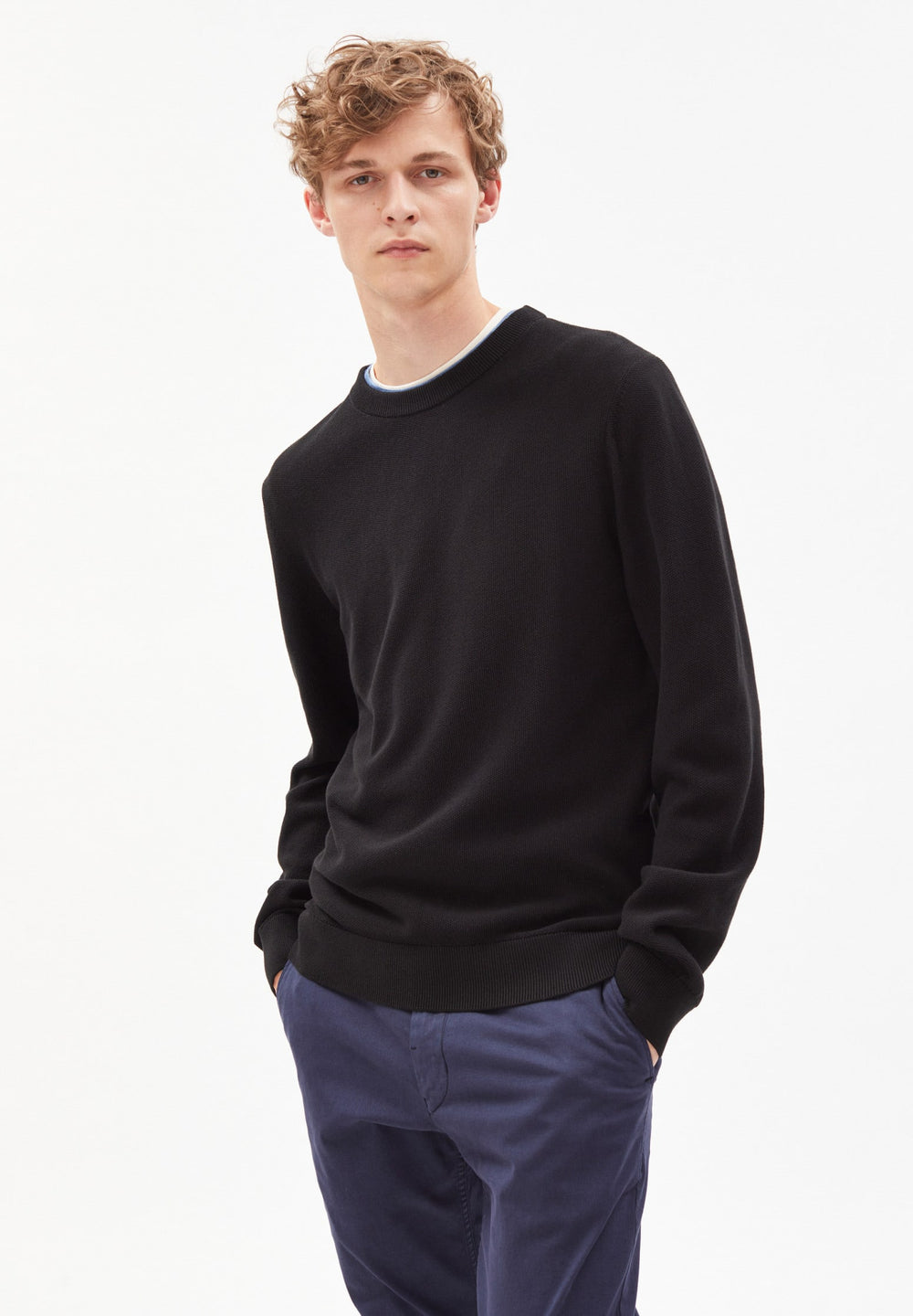A simple black (organic) cotton sweater for your collection of wardrobe staples.