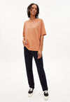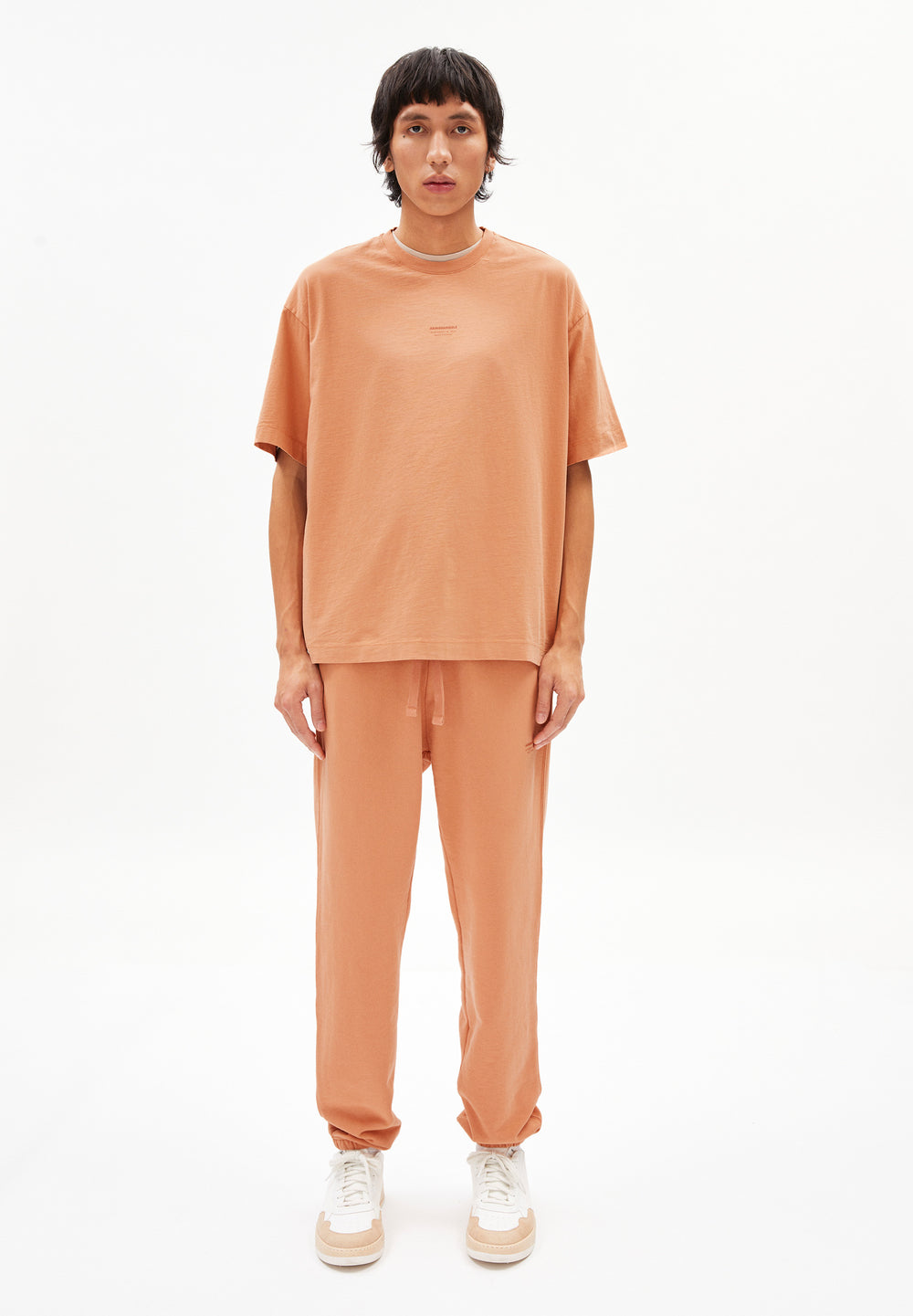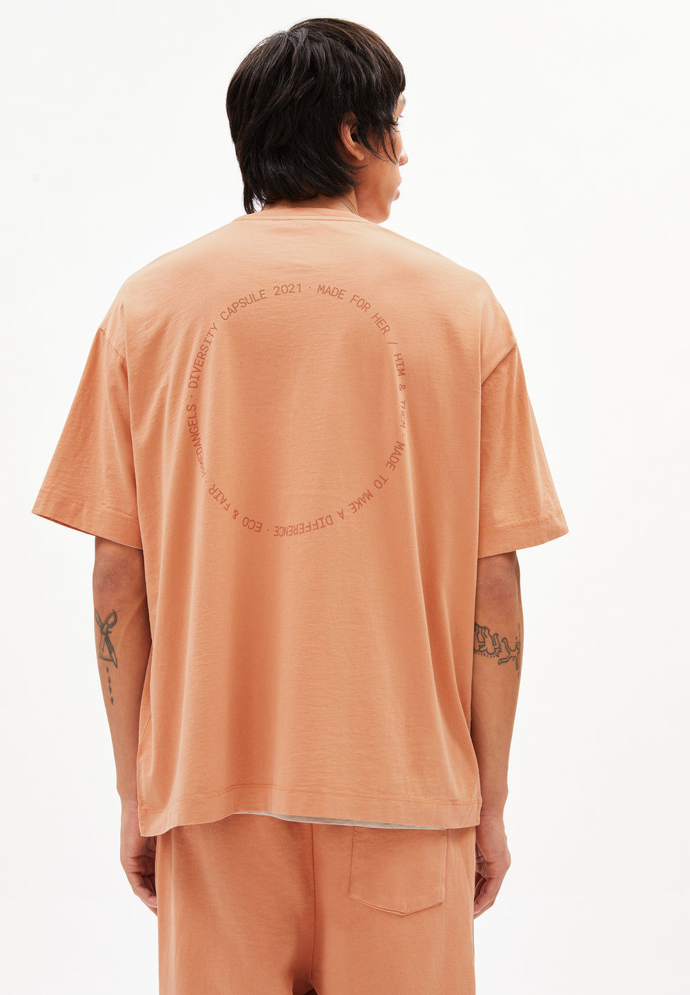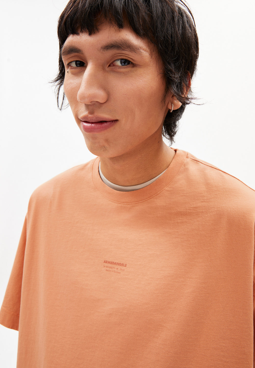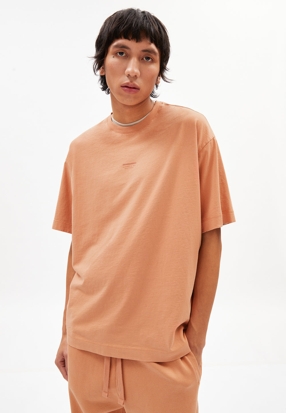A durable classic t-shirt in a refreshing soft peach shade and an earthy light desert tone.