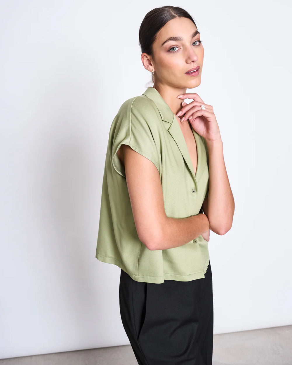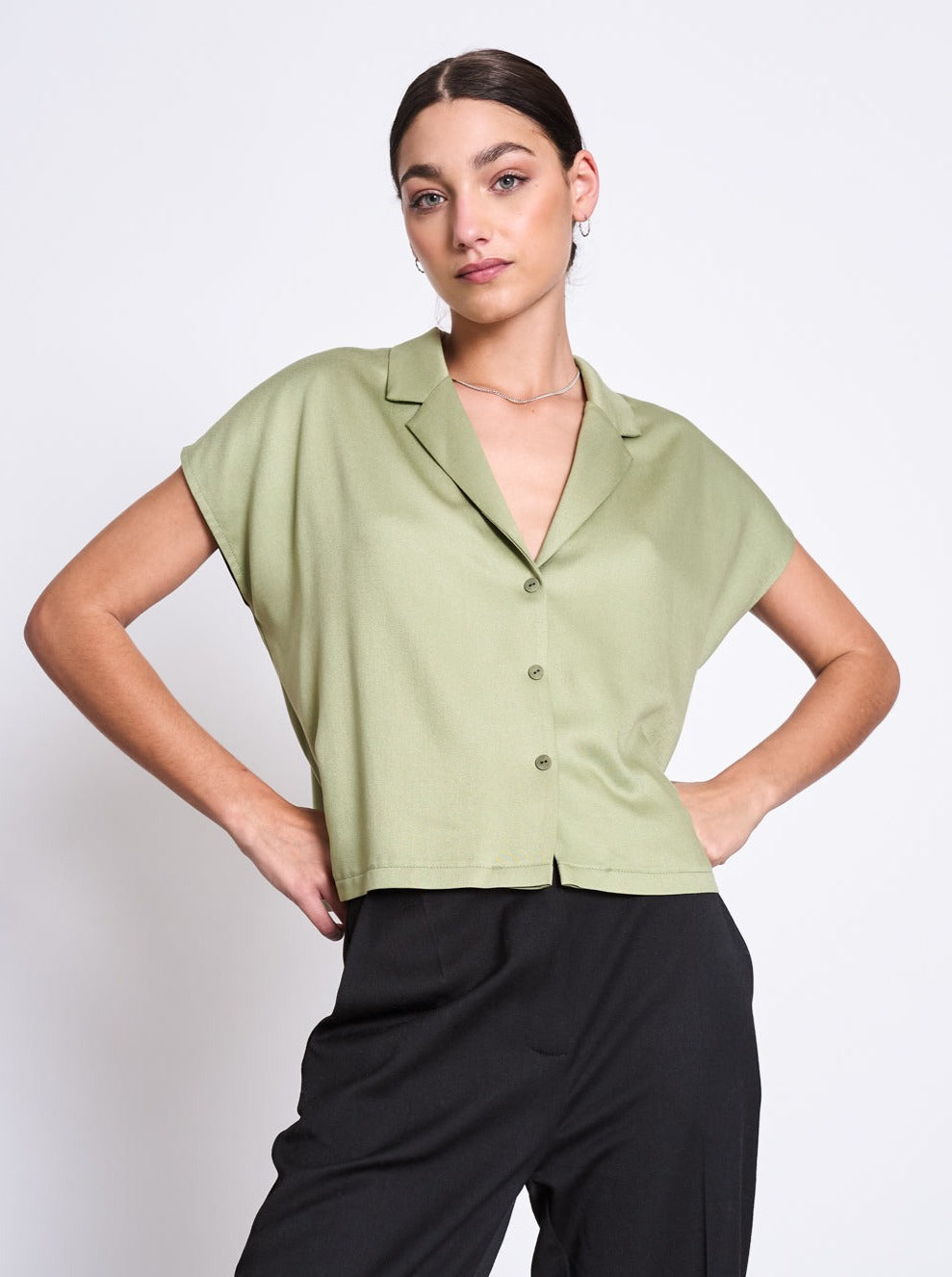 TIERRA is made from a sustainable viscose alternative EcoVero™, and features a deep v-neckline, buttons in the front and a classy collar.