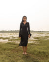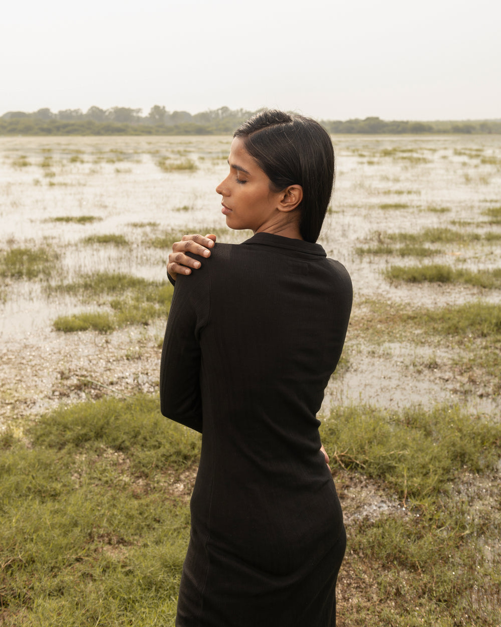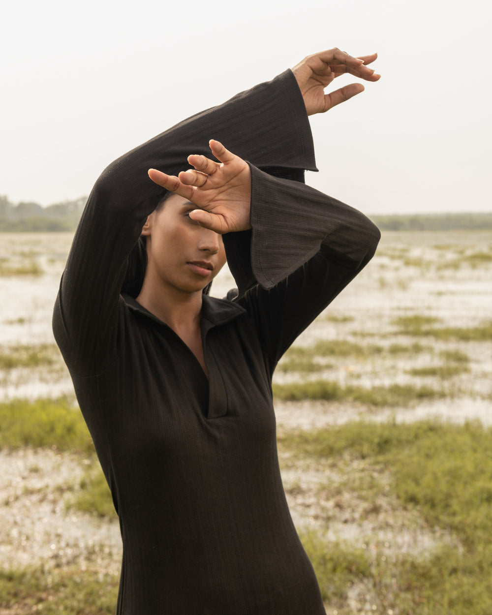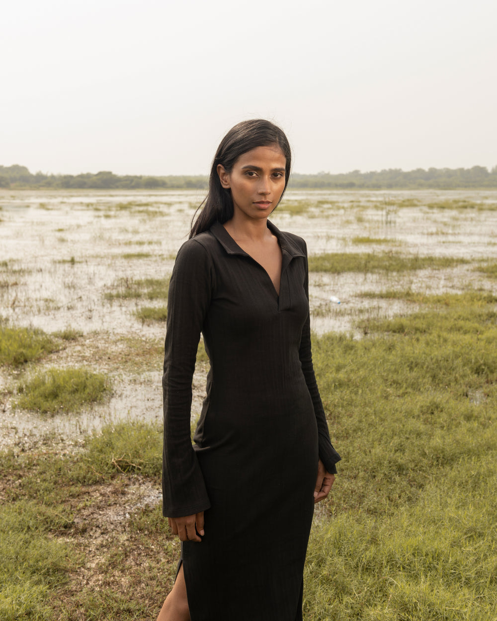 A twist on a classic: the black dress. Perfect for any occasion, from parties to work meetings. The side slits add a touch of excitement to this staple piece.
