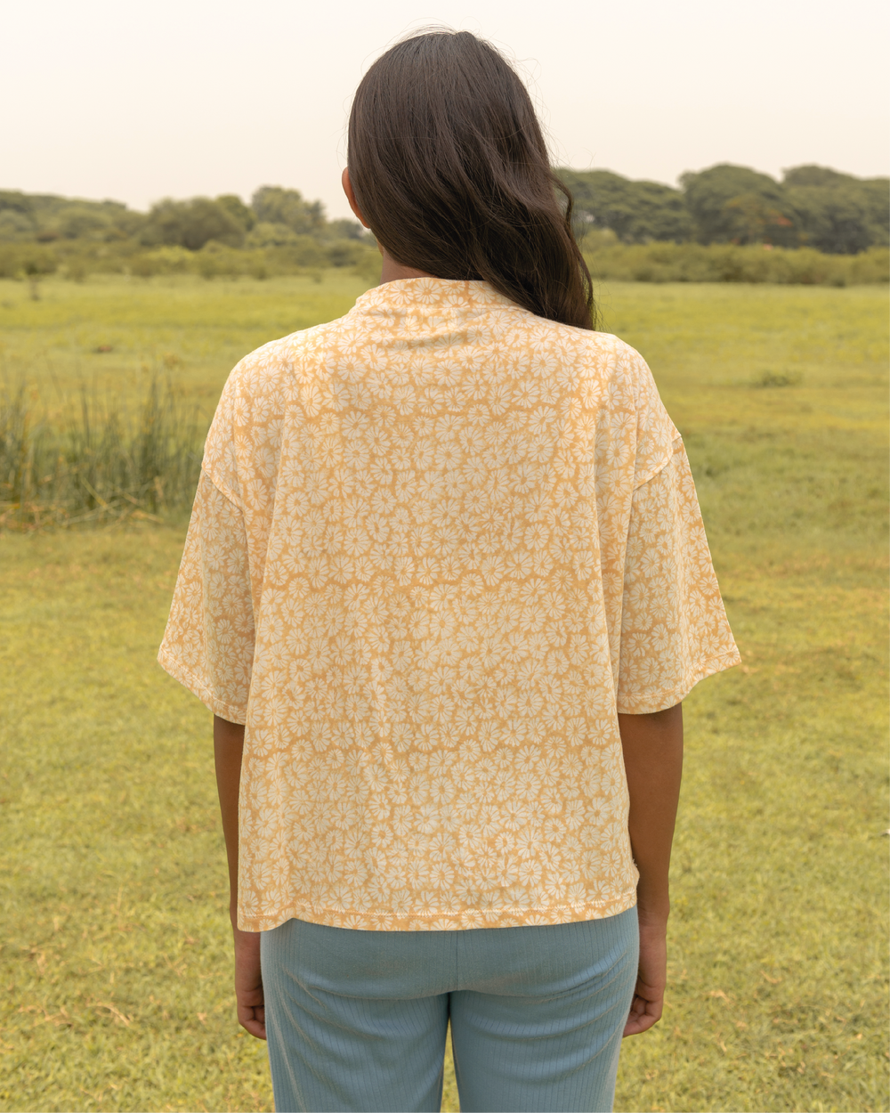 This Sunshine Resort top is sure to brighten your day with its playful daisy pattern. It's got major 90s vibes and is perfect for any occasion!