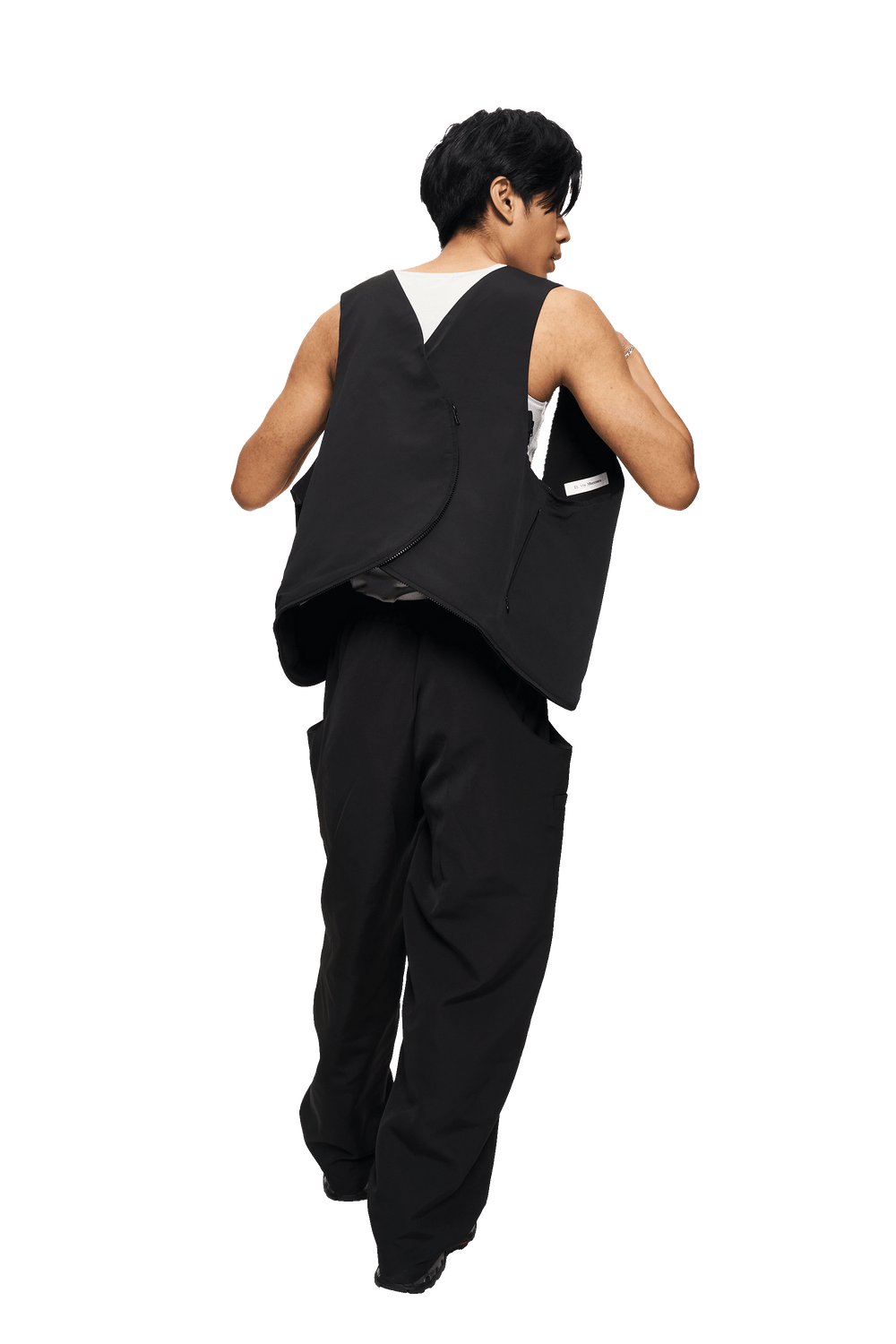 Introducing the Crescent Tote Vest: Transition seamlessly from a utility vest to a spacious tote, adapting to the urban pace and your evolving needs. Made from 100% deadstock fabric, it gives new life to materials that would otherwise end up in landfills. Limited quantities available.