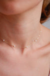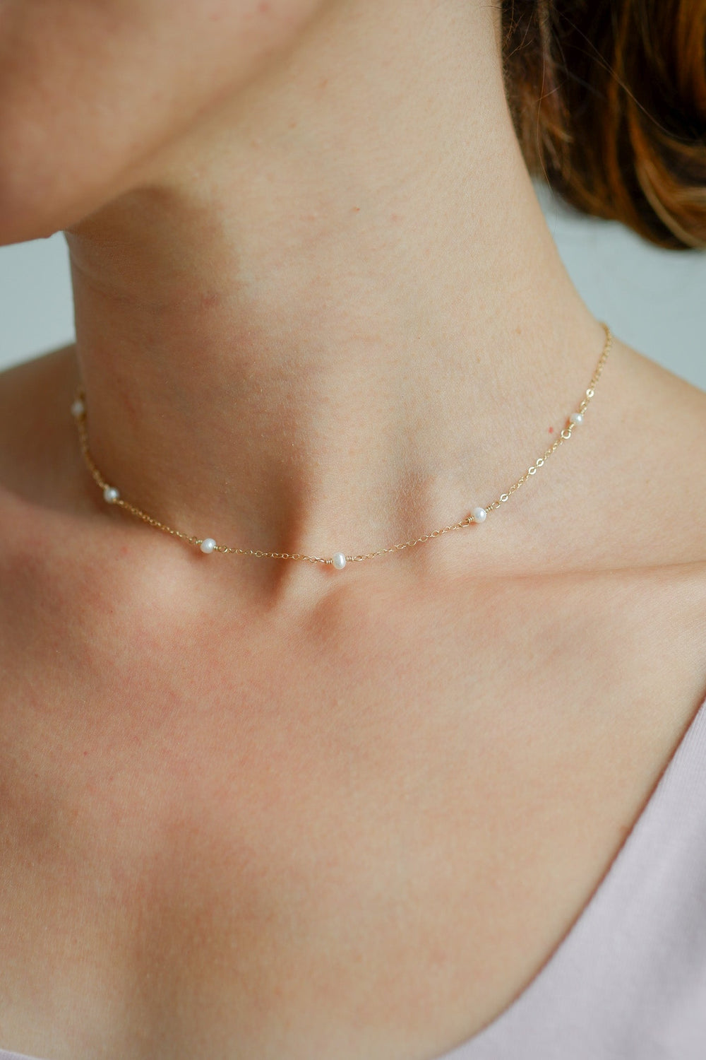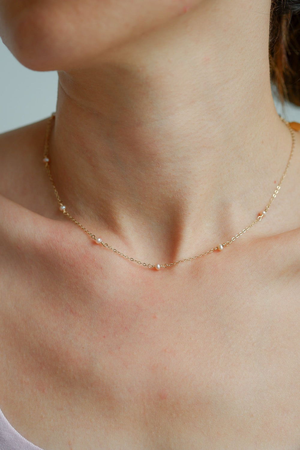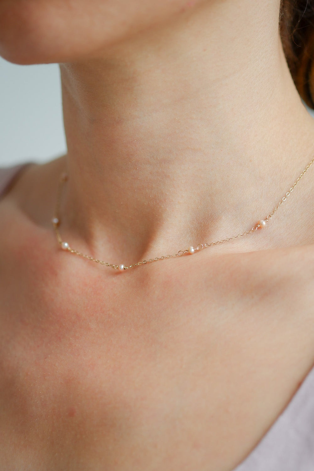 A delicate necklace piece with pearl drops for the feminine girl next door. Perfect on its own or to be stacked. Pearls are also known to represent wisdom and abundance