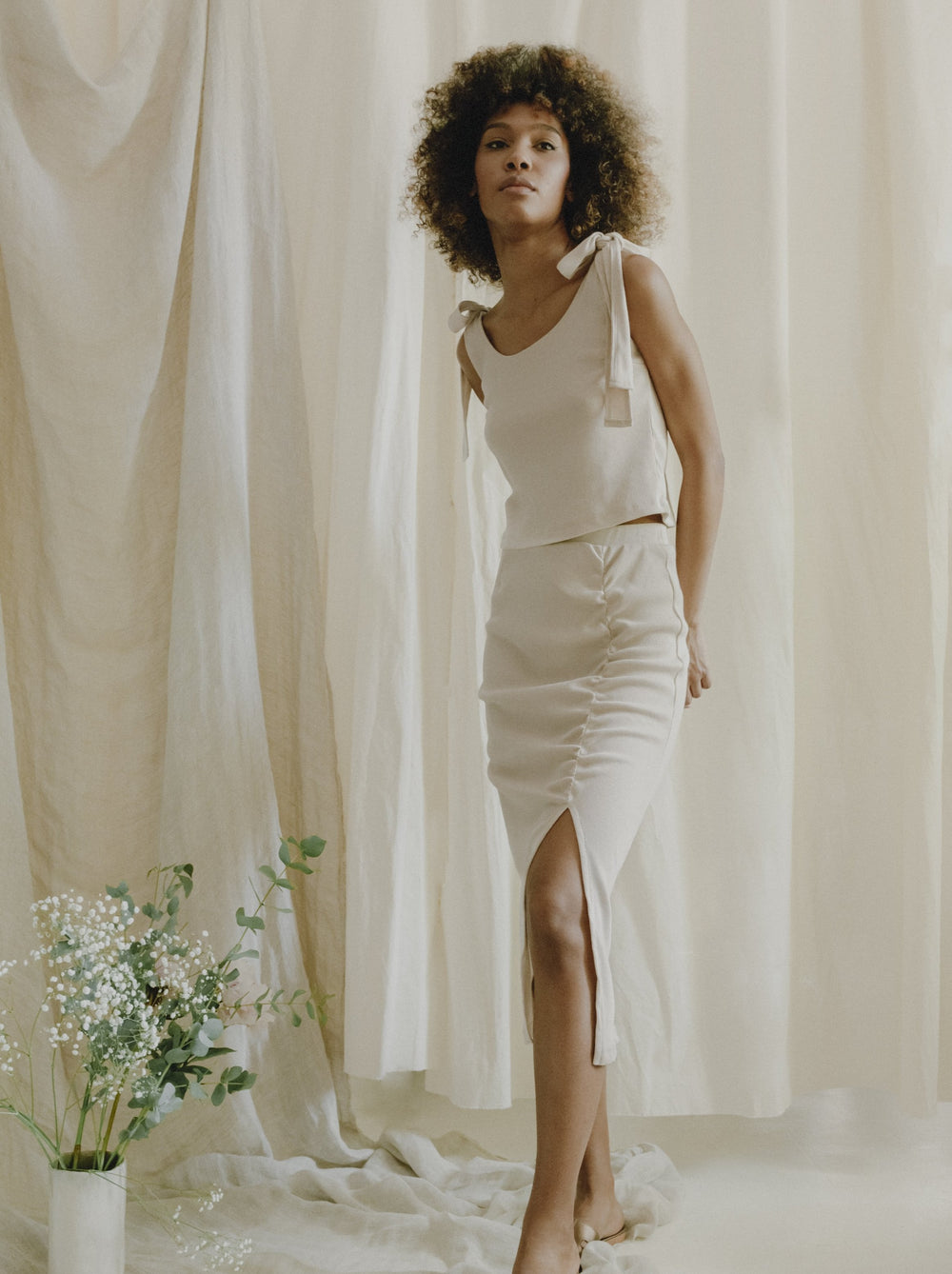 A basic everybody needs in their wardrobe. Crafted from an exclusive recycled COSSAC fabric, this vest top is perfect worn on its own or paired up with COSSAC's Summer Midi Pencil Skirt. With self-tie shoulder detail, this not-so-basic basic will adapt to any occasion & is perfect for the summer months ahead of us.