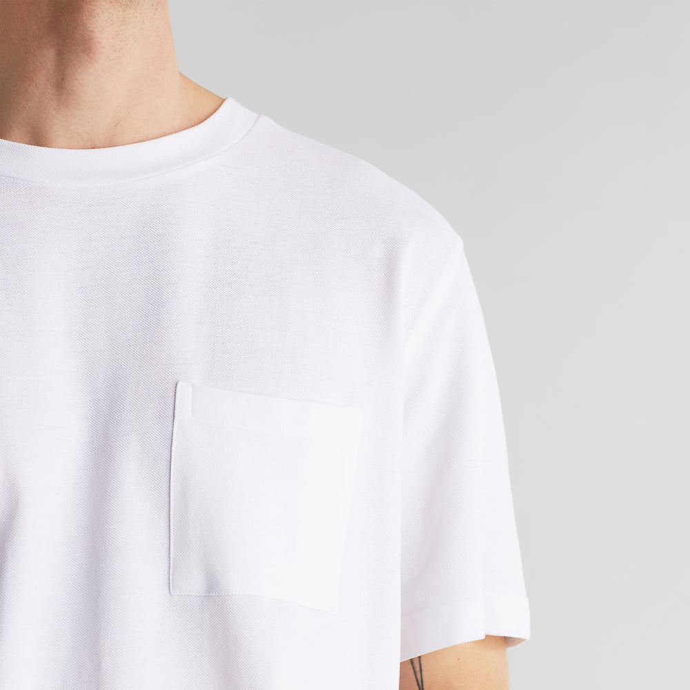 Wide, loose fit T-shirt in piqué fabric quality. Made in 100% Organic cotton with chest pocket. The style runs large in size.