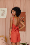 The ethical online clothing store features dresses, tops, and shorts with a signature hand-made aesthetic against solid colours. Only natural fabrics, such as linen and cotton, are used to create the pieces.