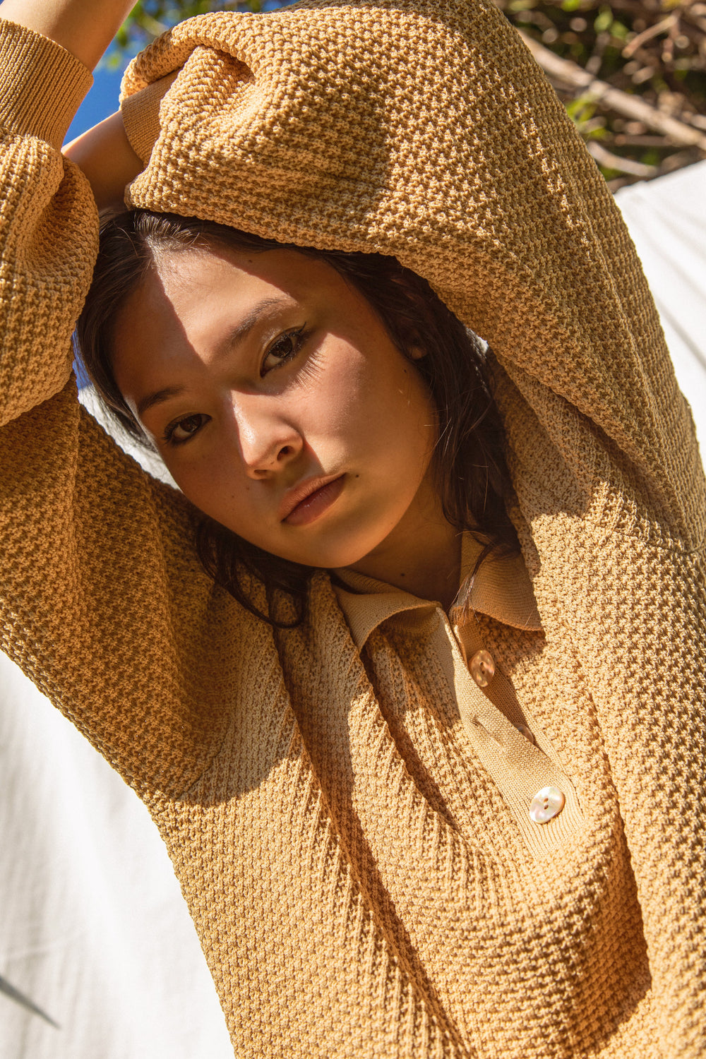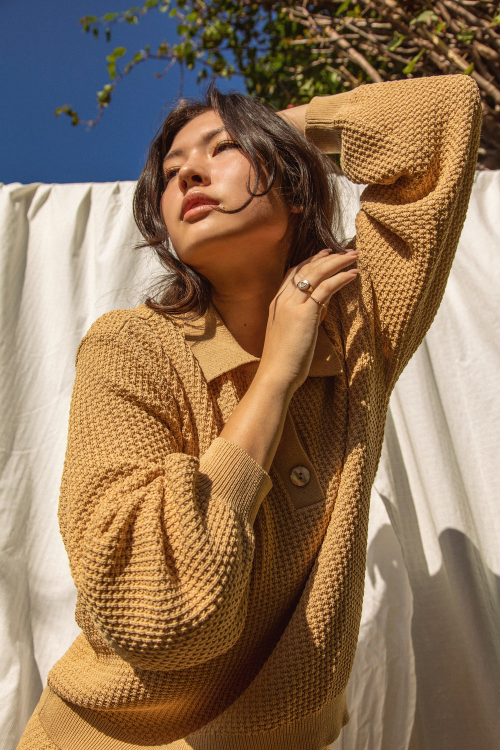 Zenni Collared Sweater is made from recycled yarns with tuck stitching detail. This comfortable silhouette with minimal touches can be worn for many years.