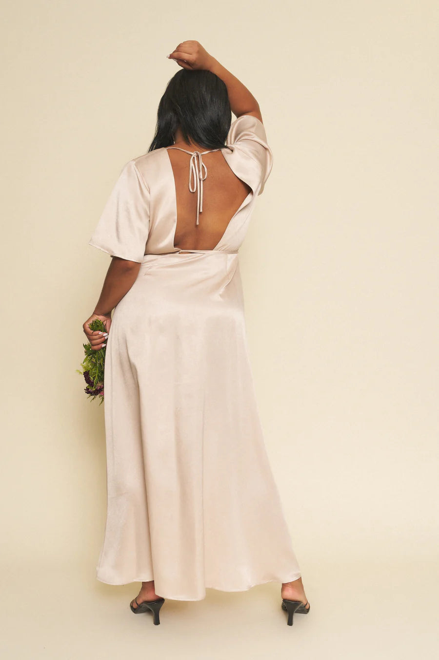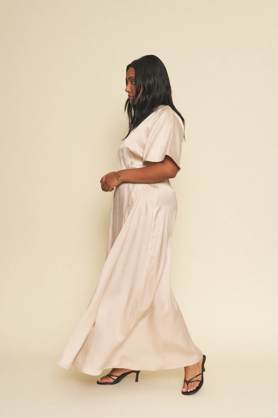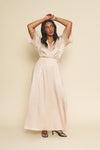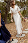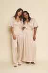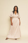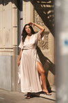 The Lola dress is what dreams are made of. It features a deep v-neckline, maxi length and flounces all around. Perfect for an elegant evening!