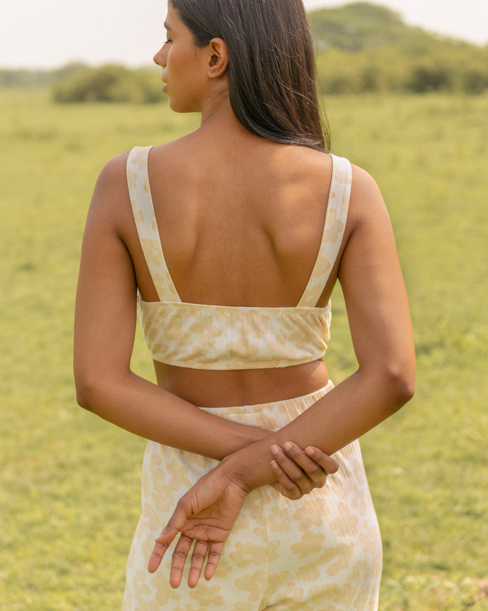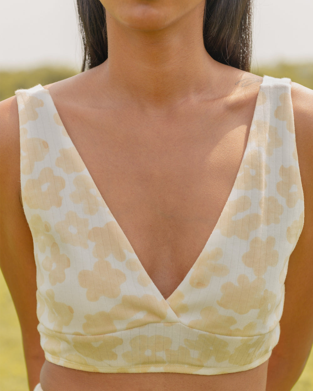 Chic bralette top in refreshing tone-on-tone print. Pairs effortlessly with everything. For your next vacation, change it up from your usual minimal styles to this floral print. The chic and refreshing tone-on-tone print pairs perfectly with any outfit.