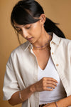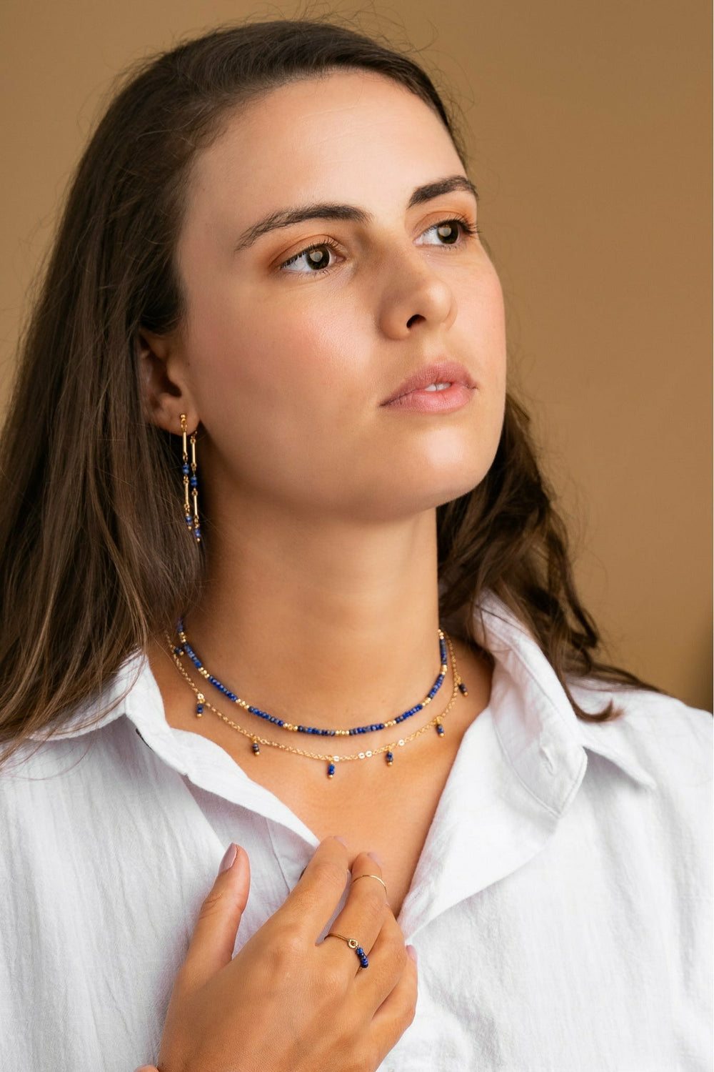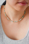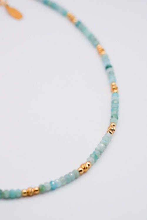The Celestial necklace adds the perfect touch of shimmer to your life. Its alternating design of semi-precious stones and gold-filled beads sparkle in the sunlight, reminding you to radiate brilliance and beauty.
