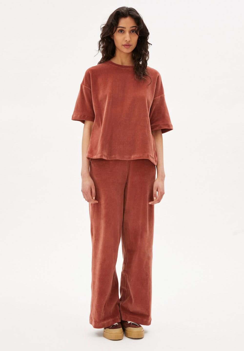 With a velvet-look finishing, MAARLI is great as a comfortable lounge top or a casual everyday tee with max comfort.