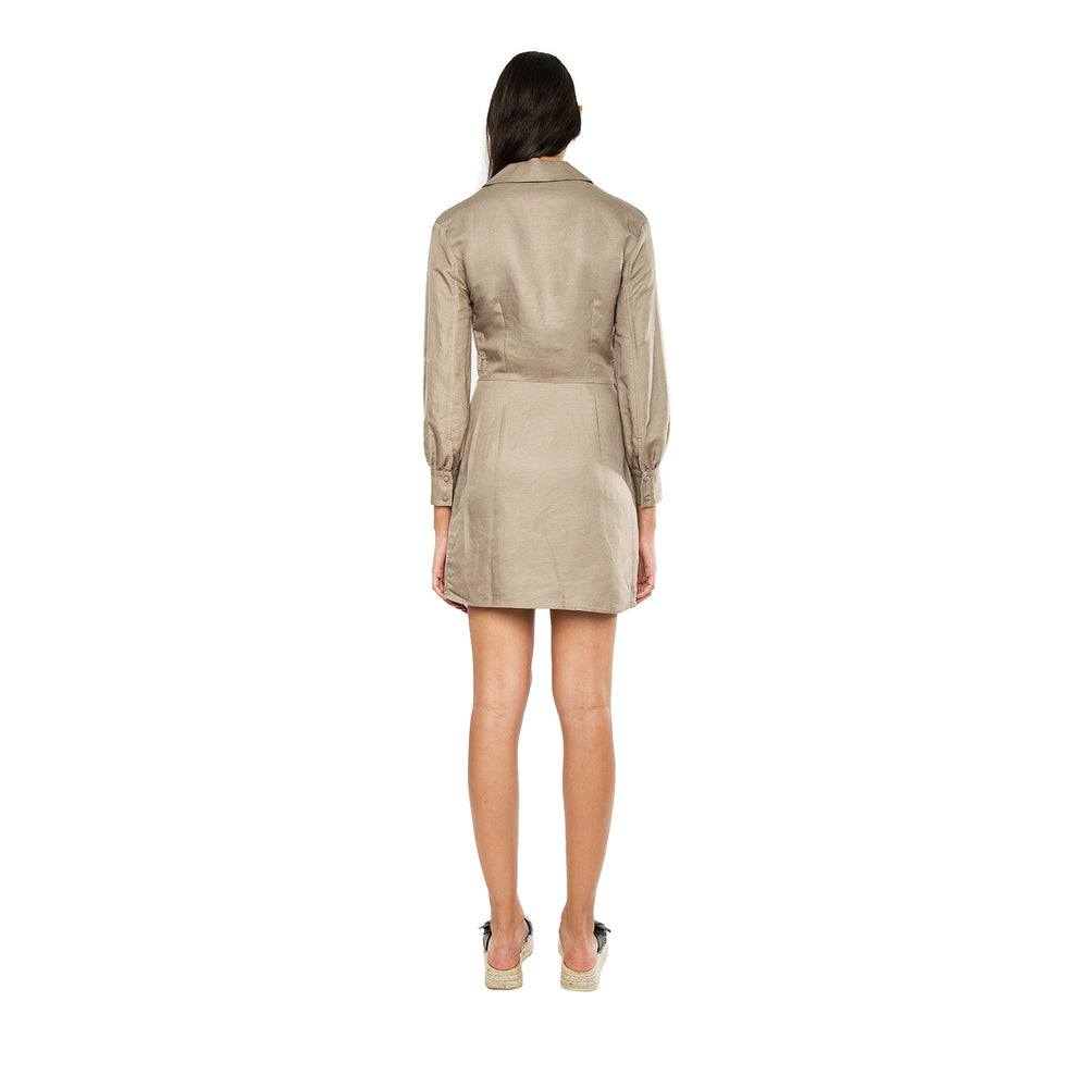 Bianca is a divine dress for making you feel like a queen. Crafted from upcycled fabric, Bianca radiates casual elegance with her regular fit, mini-length and collared crossover front. A touch of ruffles adds to the unique draped design.