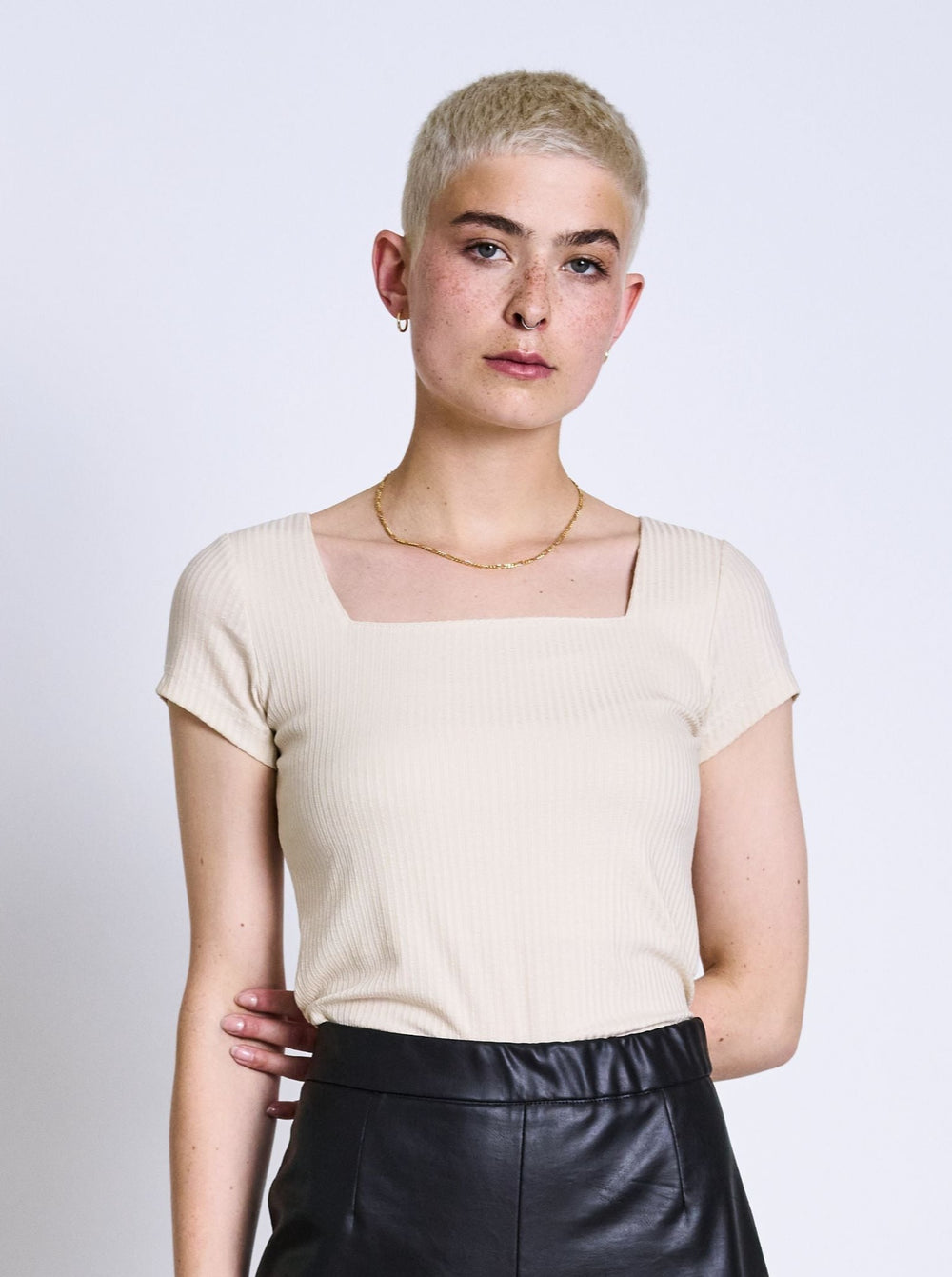 ARIMA is a slim fit T-shirt with a charming square neck.