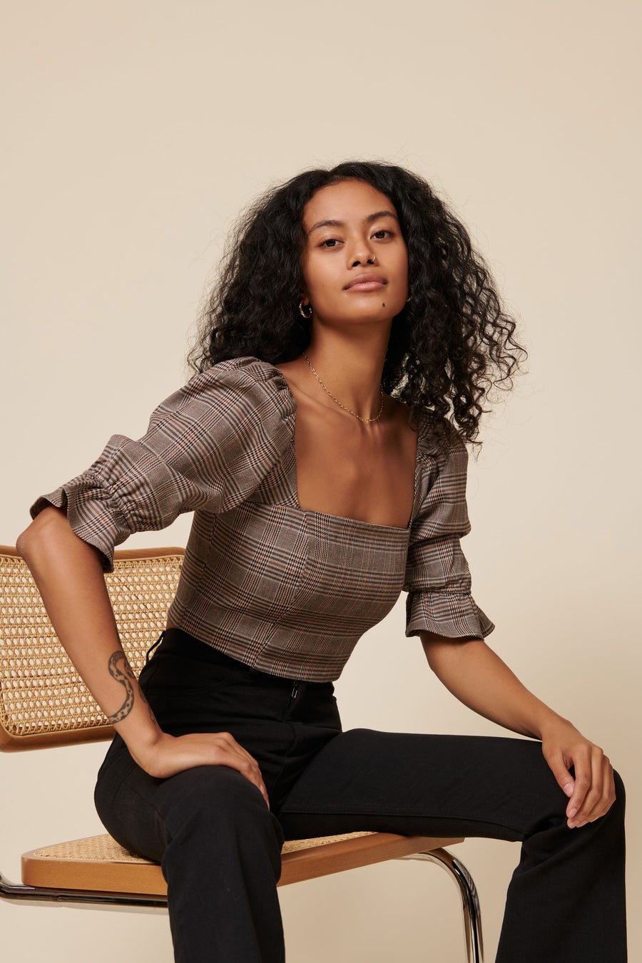 Fitted silhouette finished with a squared neckline and the cutest puff sleeves ever. Perfect for a transition from work to a night out.