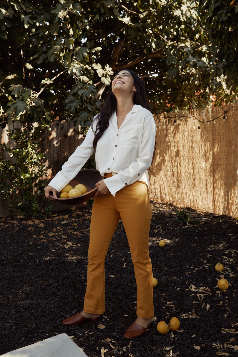 Their garments are made in limited run batches handcrafted under ethical conditions in Los Angeles. Whimsy + Row also goes the extra mile to be completely zero waste and close the loop, while they continue to use only low-impact dyes in their garment (instead of the 8,000 synthetic chemicals used in conventional dyes).